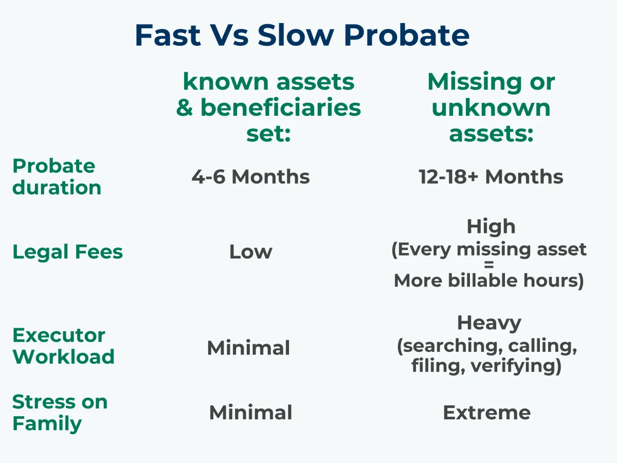 Probate courts don’t tell you what exists - your executor has to find it.